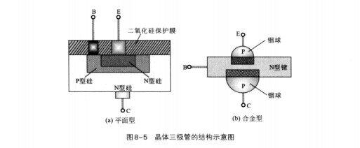 平面型和合金型晶體三極管的結構示意見圖8-5。